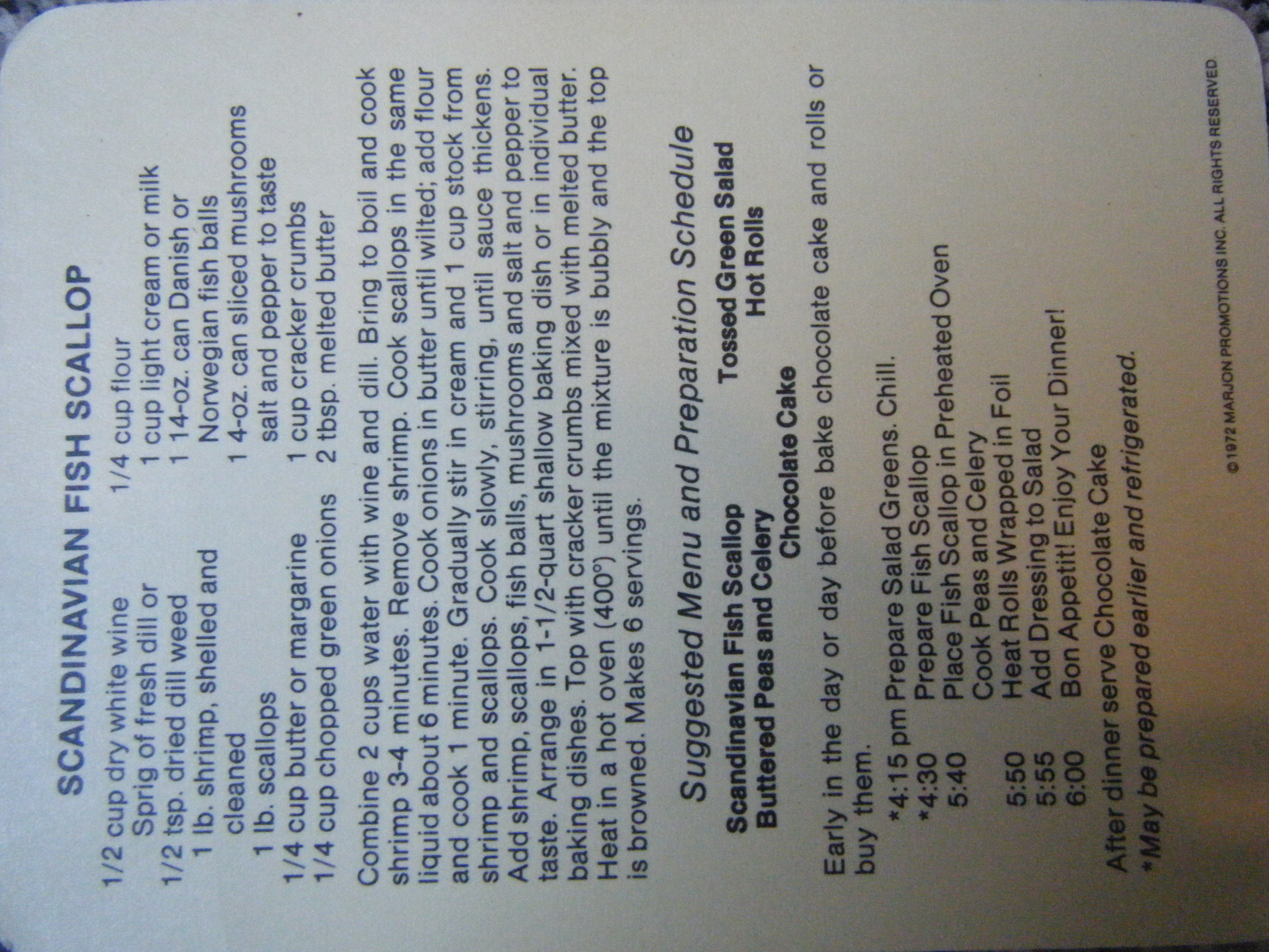 The recipe card calls for a 14-oz can of Danish or Norwegian Fish Balls. And I tried to find one, but apparently there is not a Danish or Norwegian population in Baltimore. I called specialty food stores and ethnic groceries–no one had fish balls. They don’t carry them at IKEA (or a Swedish facsimile). I tried to order fish balls online but the shipping costs would’ve made the balls over $30. Screw that.