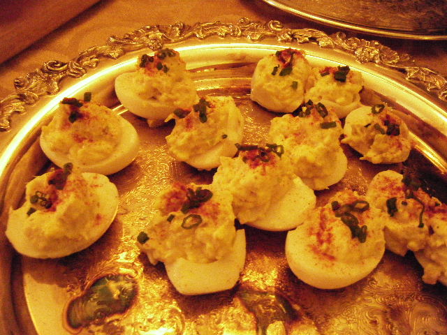 But right now that is neither here nor there. Now why did I choose these two dishes? Because I love anything that’s called a puff. And I think deviled eggs are delicious. And with crab–fancy!